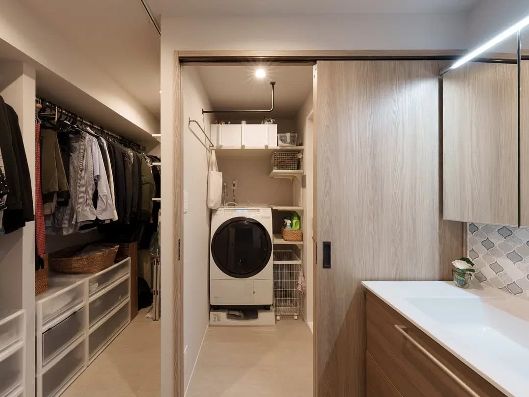 キッチンから洗濯機、クローゼットへと無駄なく移動できる導線を作ると、日々の家事ストレスが驚くほど減ります。