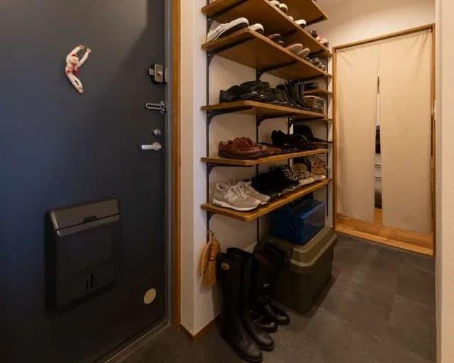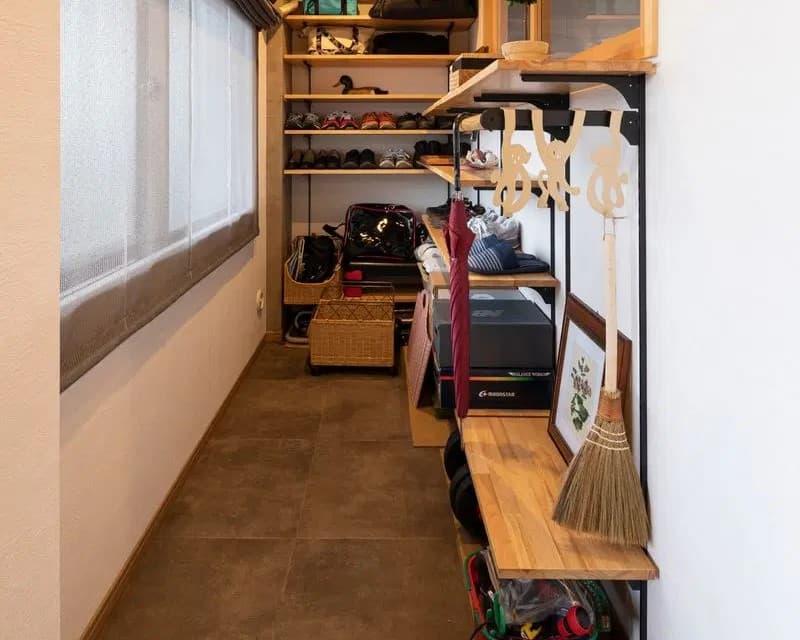 玄関のスペースを広げて、新しい収納部屋を設けることで収納不足を解消しました。