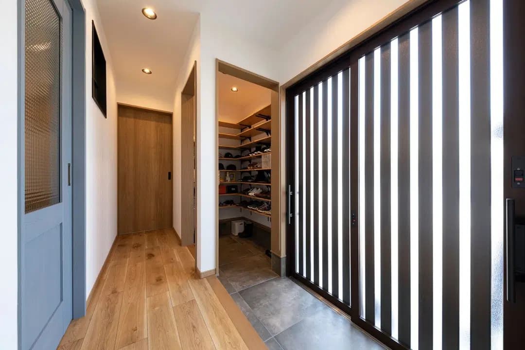 土間の広さと収納の実用性を両立させることで、デザイン性も高く、使い勝手の良いおしゃれな玄関に仕上がりました。