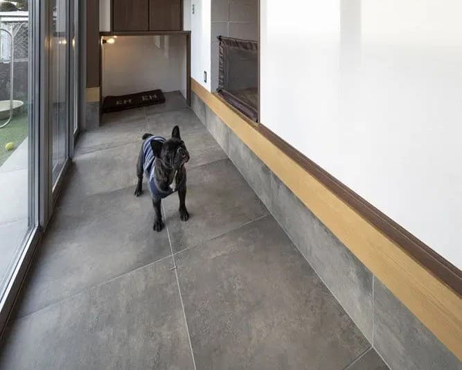 土間にマットを埋め込んだり、水拭きができるタイルやモルタル素材を選んだりすることで、清掃性を確保できます。