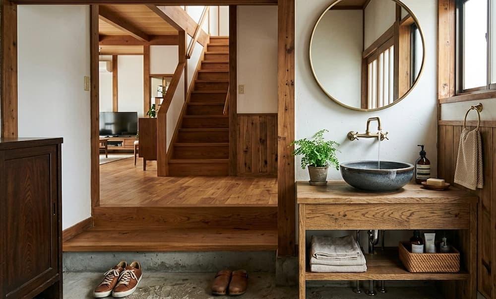 水が外に逃げないようなデザインや工夫を取り入れることで、無垢材の床やこだわりのインテリアを水濡れのダメージから守り、長く大切に使い続けることができます。