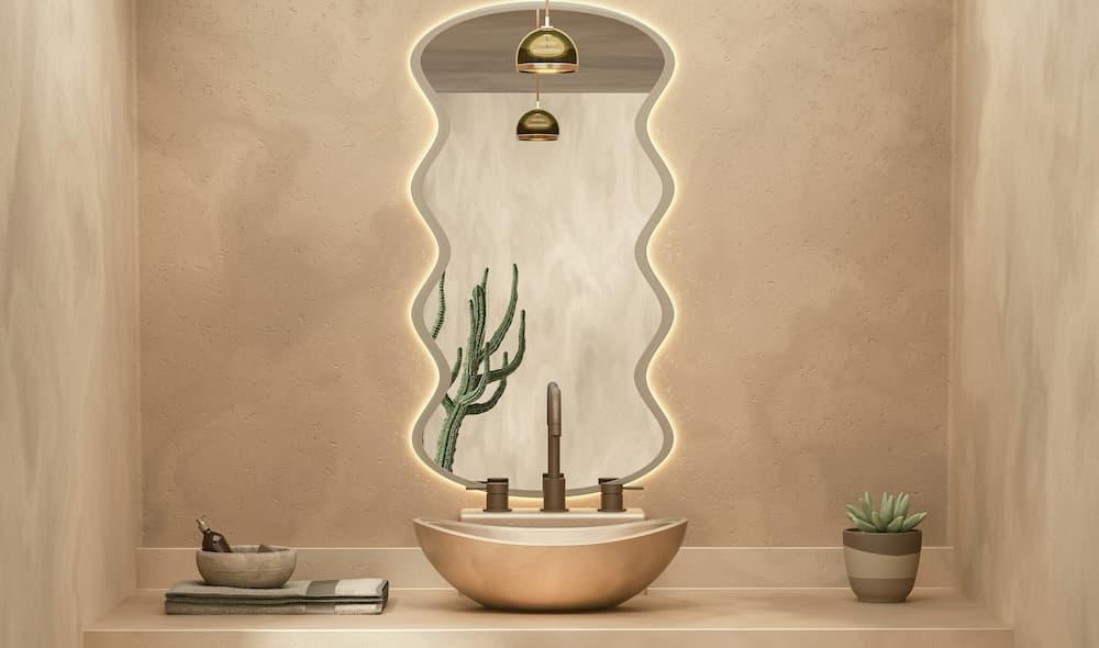 洗面ボウルを単体で選ぶのではなく、背景となる壁面のタイルの色合いや、あたたかみのある素材感との相性を全体のバランスで見ることがおしゃれに見せる秘訣です。