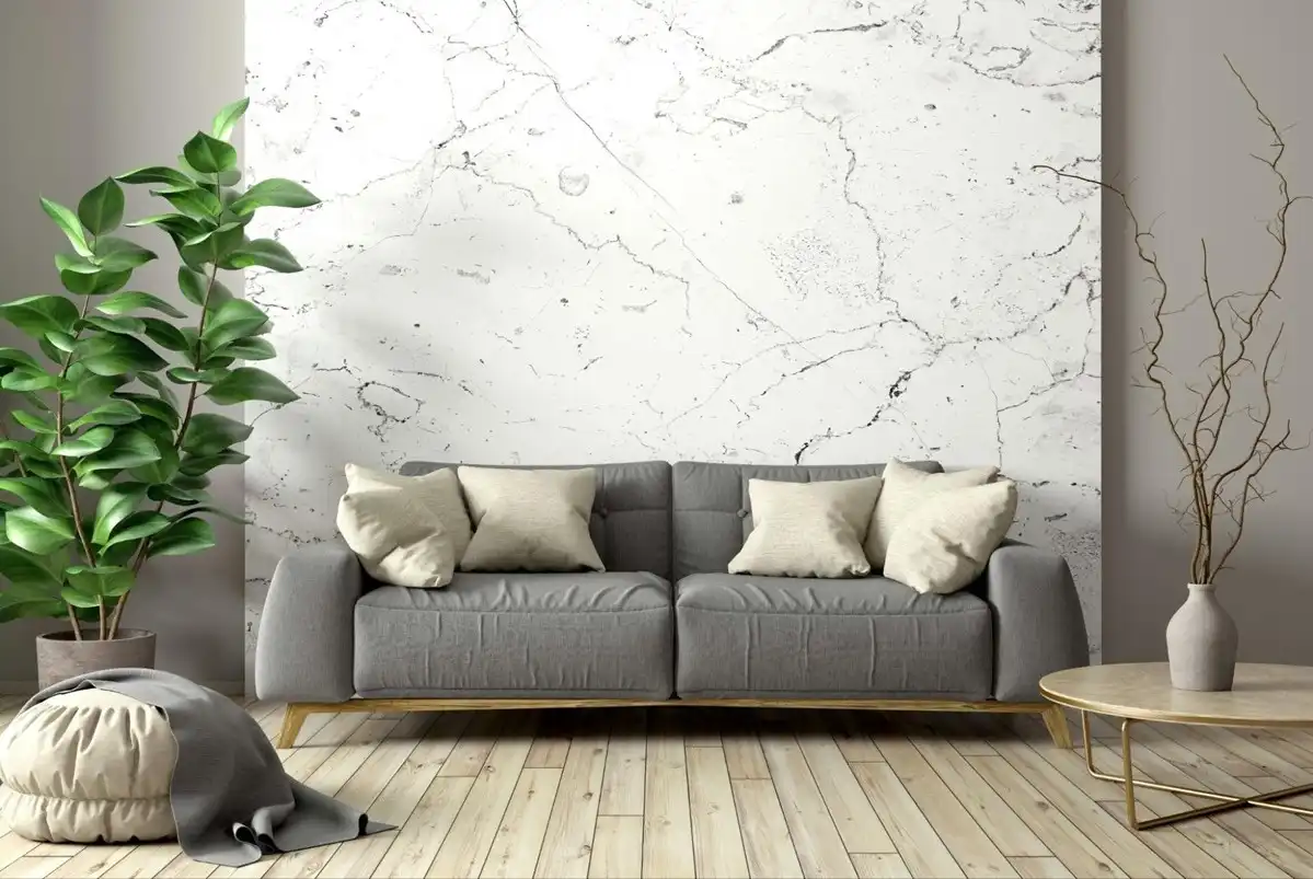 例えば、同じ白やグレーでも、壁にはマットな質感の塗装を、床には石目調や木目調の素材を、ソファには織りの深いファブリックを使うなど、素材の質感差(マット/艶/木目)で表情を足します。