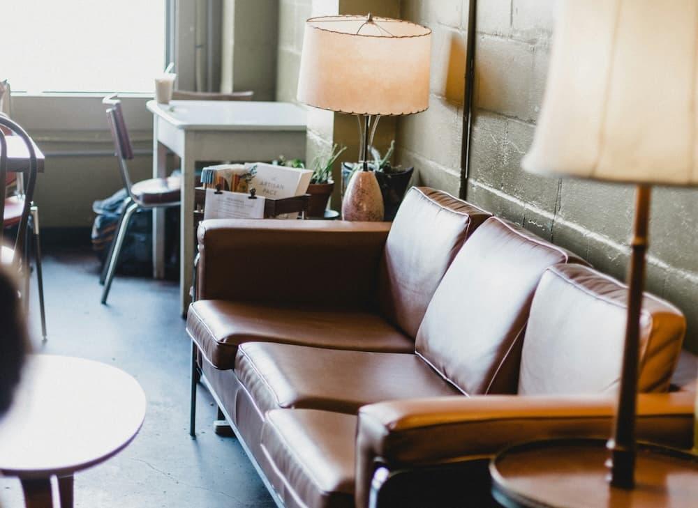 ソファや椅子に使うファブリックは、レザーや厚手のキャンバス地など、タフな印象の素材を選びましょう。布面積が増えすぎないようバランスを見ることが大切です。