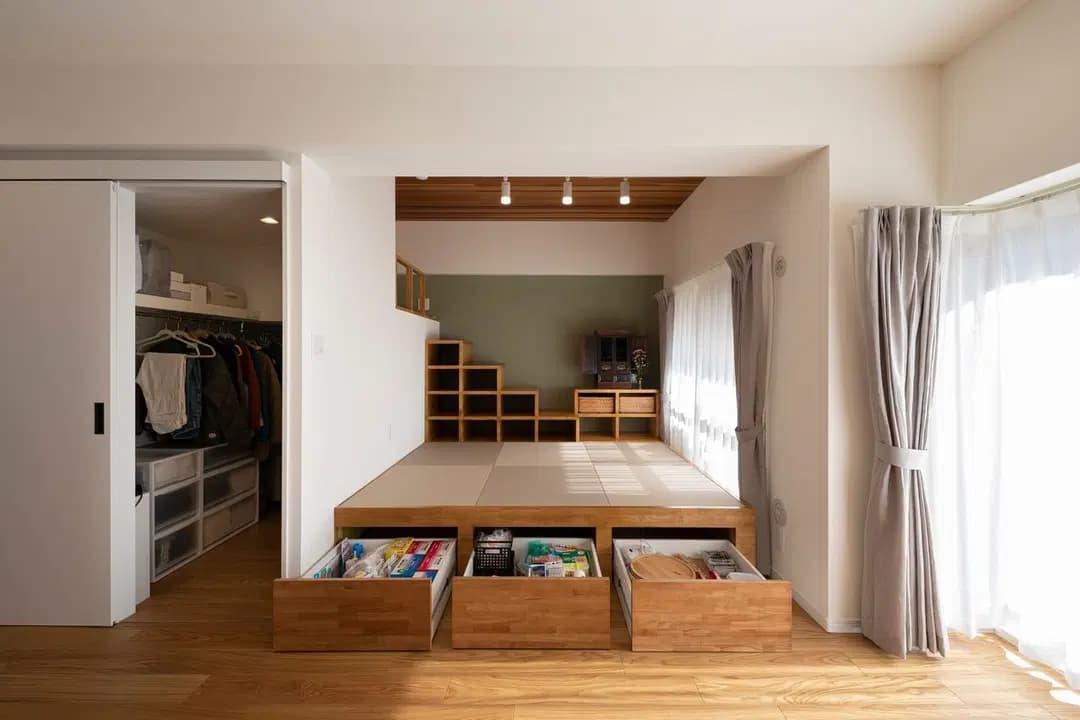 憧れの小上がりで心ゆくまで寛ぐには、生活感を見せない収納の工夫が欠かせません。