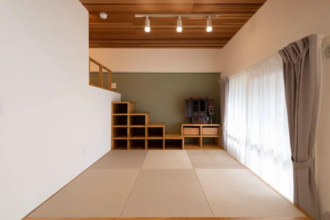 床から直接登るのではなく、一段高くなった小上がりを経由して移動できるので、上り下りがしやすく、空間を立体的に活用できます。