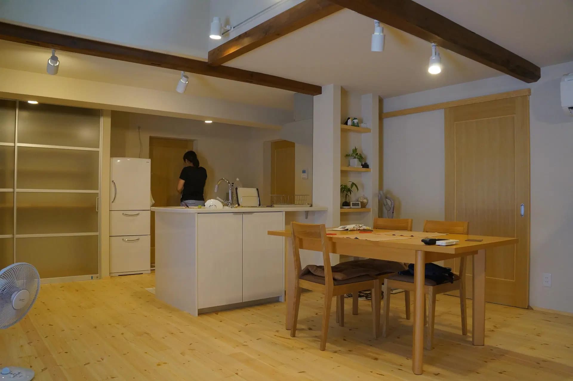 若いご夫婦がお住まいになるため、古材を生かしつつモダンに、また住宅の性能をアップするデザインをご提案。